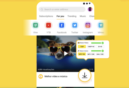 No Snaptube app download, você que escolhe a resolução do seu arquivo. Tenha MP4 em HD ou MP3 com 320kbps. Sem pagar nada extra por isso. Também pode economizar a memória do seu celular ao baixar vídeos em qualidades mais baixas, como 360p. Você poderá escolher o formato e a resolução antes do download. Com o app Snaptube baixar de plataformas diferentes em um único lugar é possível. Não importa a rede social, pode ser Twitter, Instagram, Tiktoc, Facebook e mais de 50 outras plataformas.